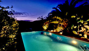Schöner Poolbereich mit 6 Sonnenliegen, Pool- und Gartenbeleuchtung